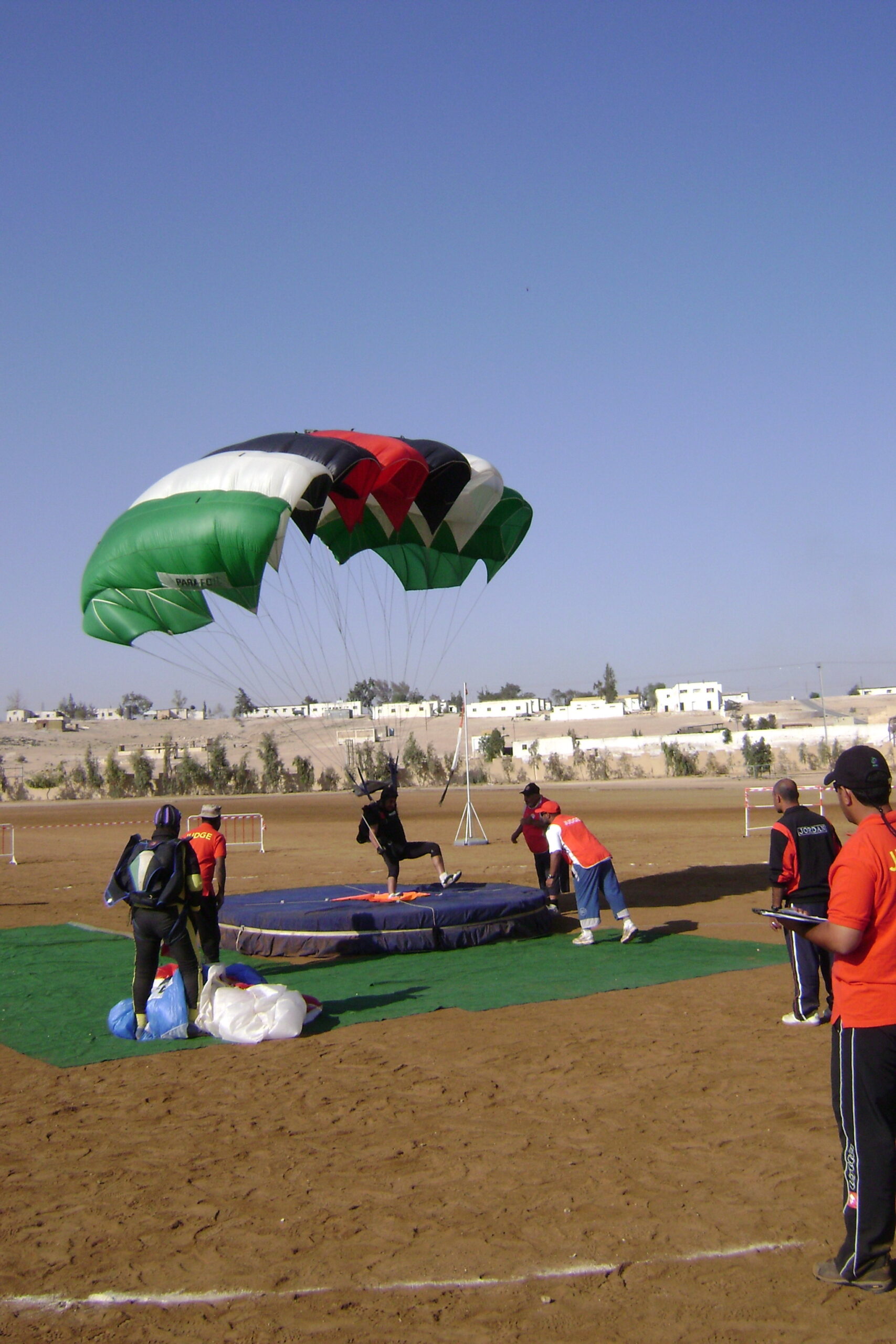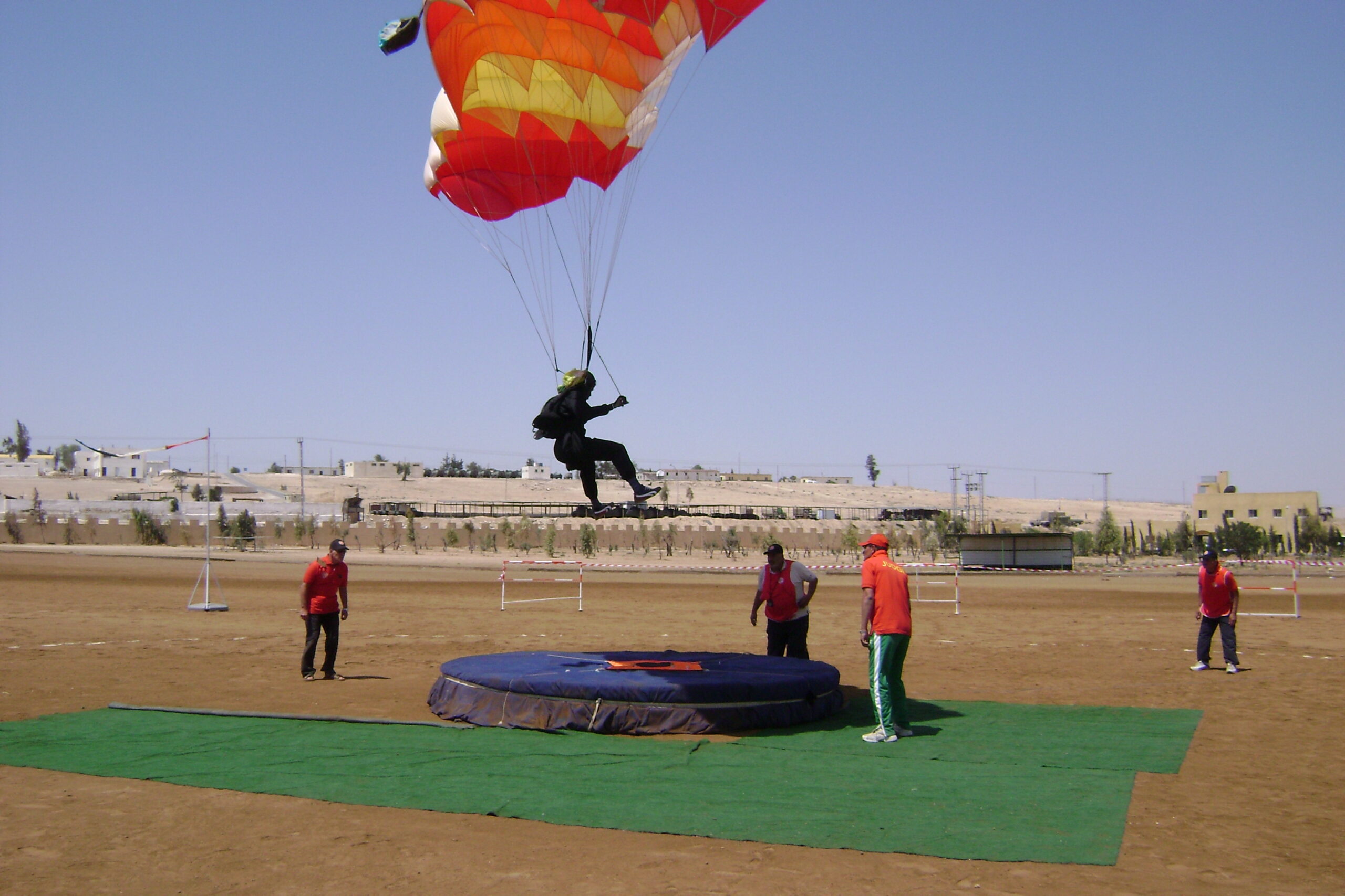 Drop Zone: The championship began at the drop zone of Al-Jubaihah Club, located 2.5 kilometers from the hotels where the teams and delegation leaders stayed. The arrangement for conducting the championship events was well-organized in terms of air traffic control, with two helicopters on site to ensure continuous jumps. All technical devices, equipment, and administrative arrangements required for the championship were provided at an excellent level. This area was used from May 21-25, 2009.